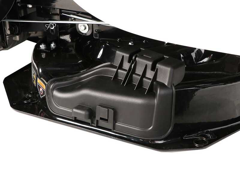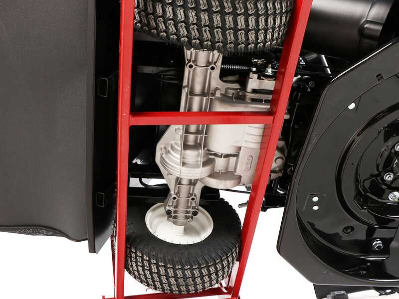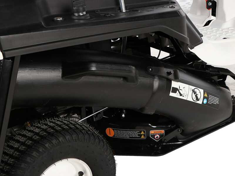 Dans le cas où vous souhaitez remettre le tracteur en configuration à éjection latérale ou bien en mulching, il n’est pas nécessaire de démonter le bac. Il suffira également de retirer le canal d’acheminement du plateau de coupe au bac arrière, en laissant ce dernier monté même si inutilisé. Opération qui s’effectue en une minute.